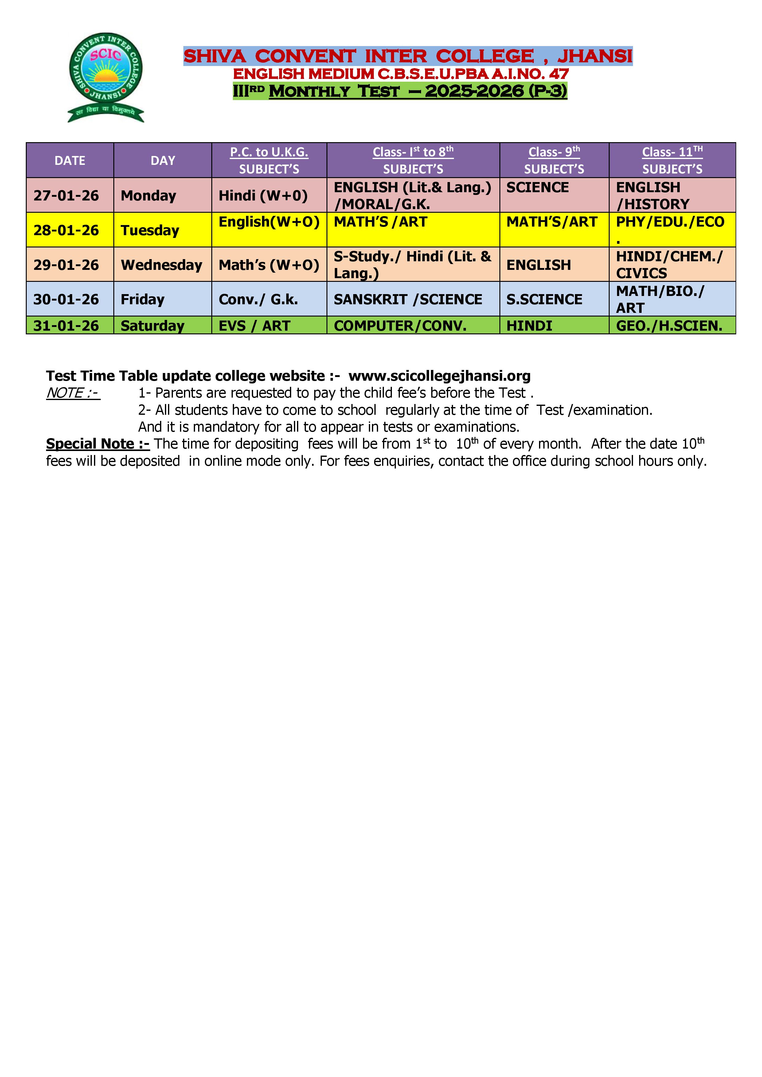 Shiva Convent Inter College is established in 1993. Environment of Shiva convent school is very good for studies and teacher’s are very passionate and qualified. Contests are held periodically at school to improve mental and physical and intellectual growth of children. Shiva Convent Inter College, Jhansi prepares students to understand, contribute to, and succeed in a rapidly changing society, and thus make the world a better and more just place. We will ensure that our students develop both the skills a sound liberal arts education provides and the competencies essential for success and leadership in the emerging creative economy.
